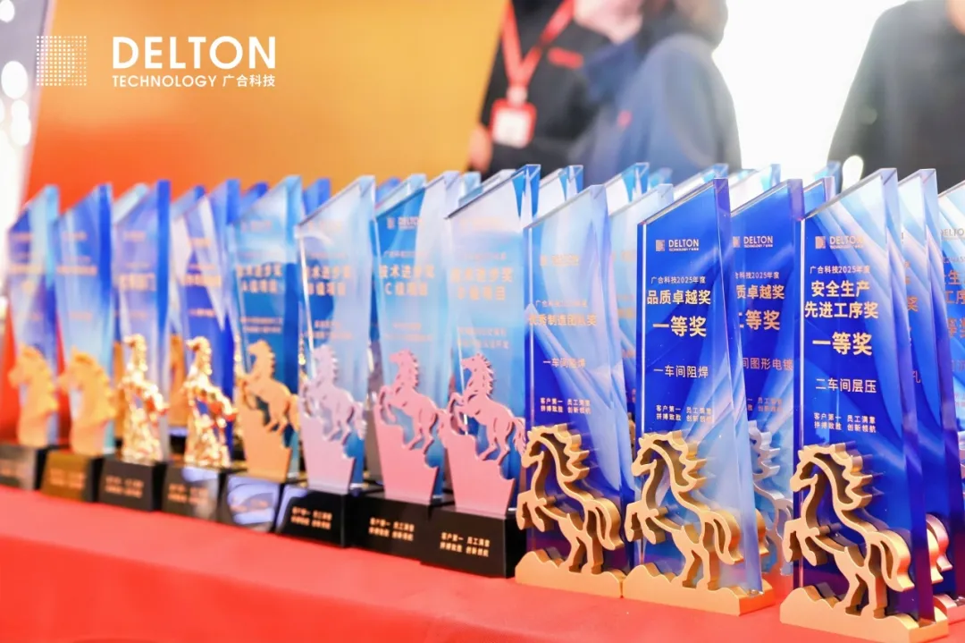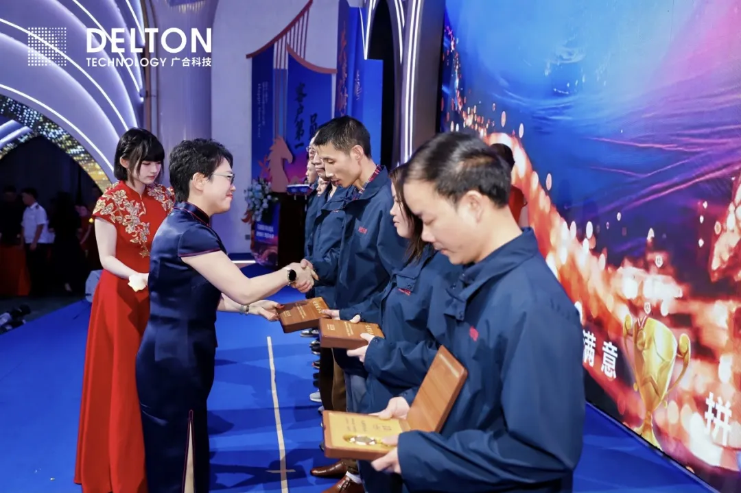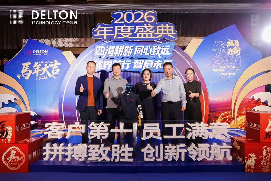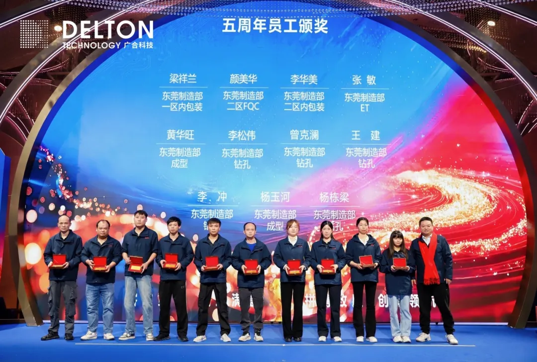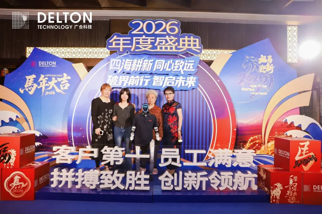 当日下午,载满员工的大巴车陆续驶向年会现场。签到区人头攒动,更有智能机器人迎宾,大家纷纷在主题背景墙前合影留念;红毯两侧陈列着年度大事记展板,泰国厂投产、美国分公司成立、广州厂技改攻坚的画面一一重现。