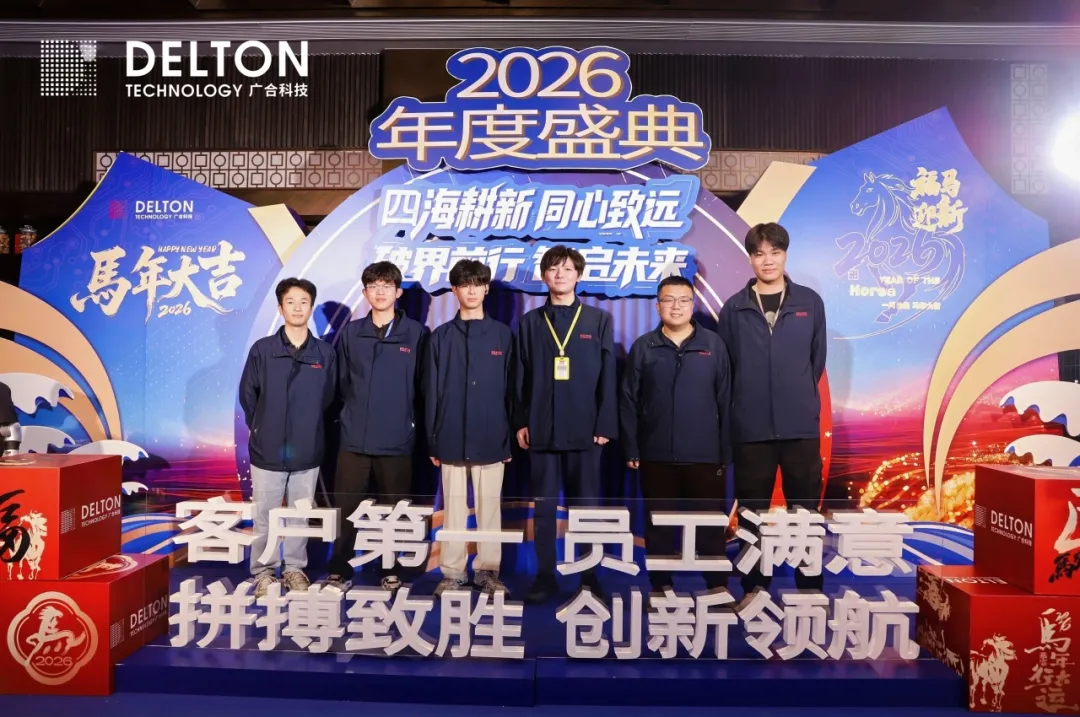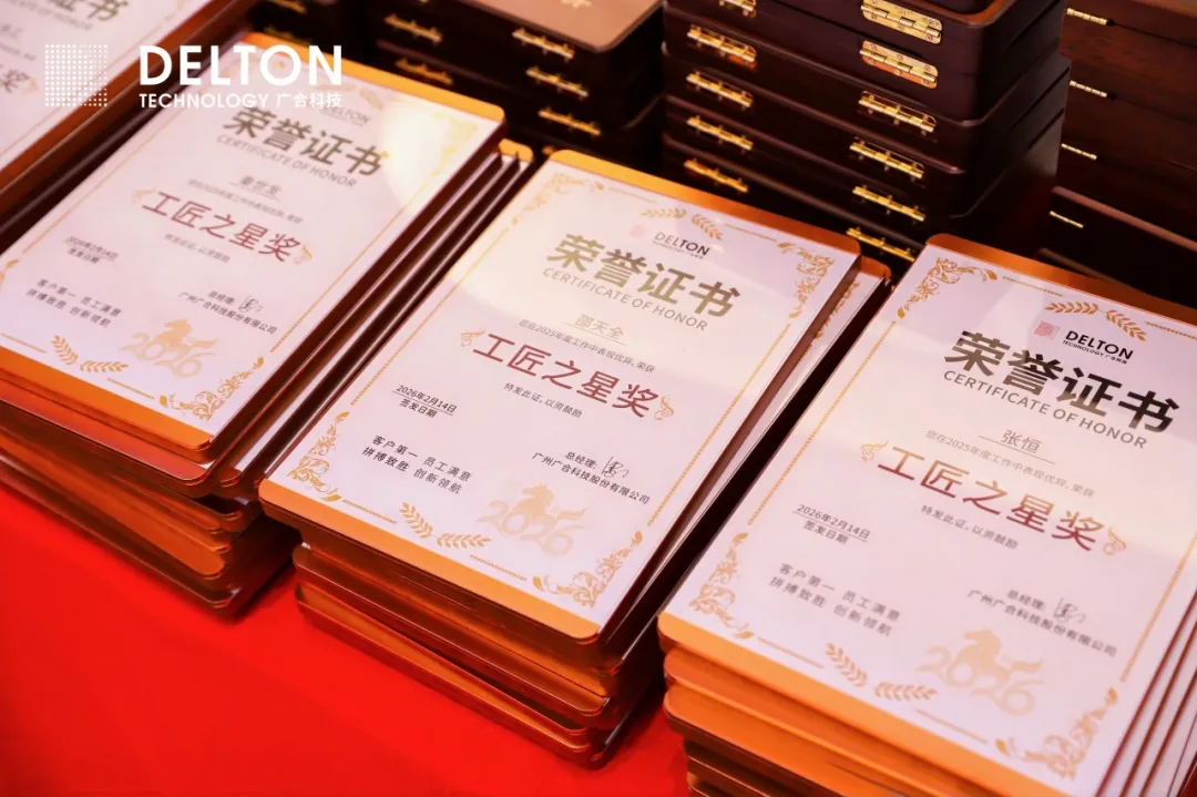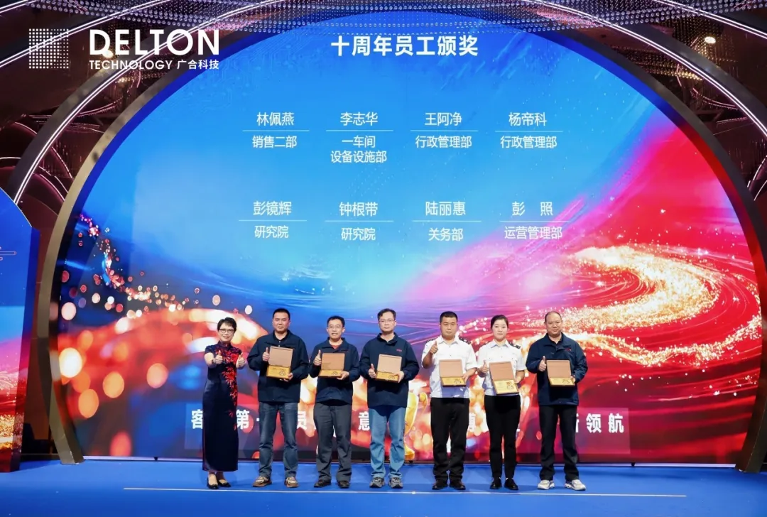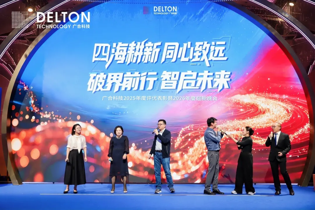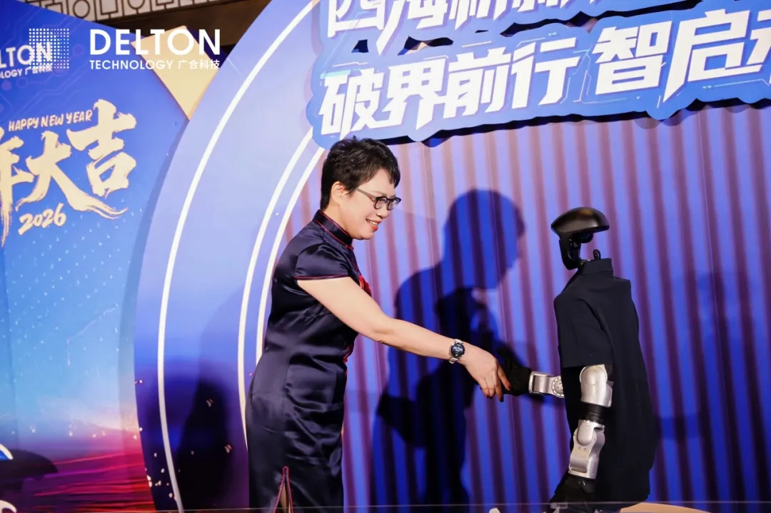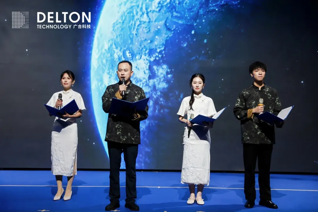 当日下午,载满员工的大巴车陆续驶向年会现场。签到区人头攒动,更有智能机器人迎宾,大家纷纷在主题背景墙前合影留念;红毯两侧陈列着年度大事记展板,泰国厂投产、美国分公司成立、广州厂技改攻坚的画面一一重现。