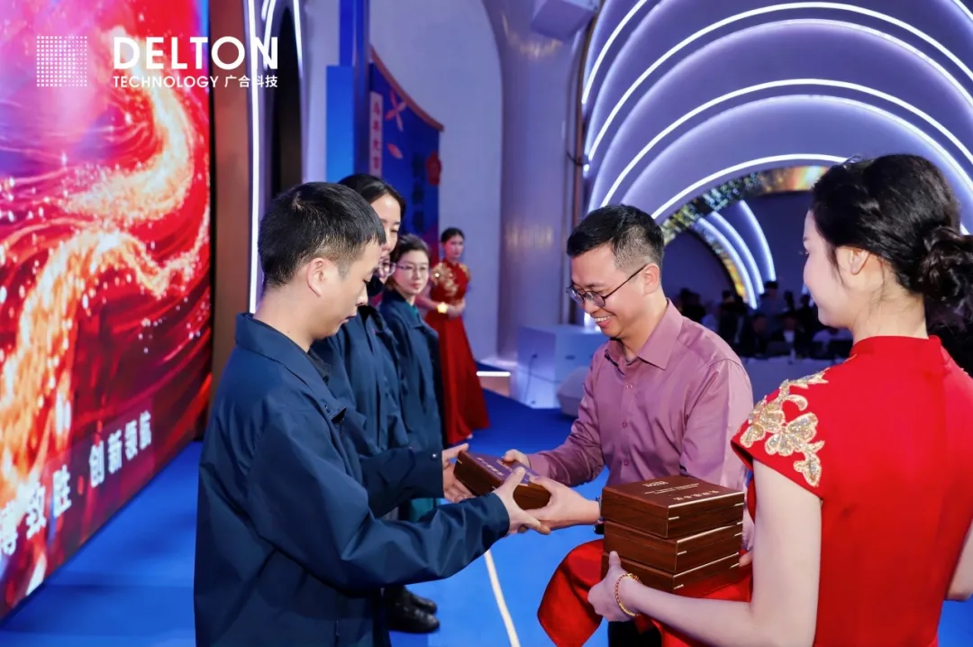 晚会进入最温暖、最庄重的荣誉篇章。经严格评选,一批在2025年表现卓越的个人与团队荣耀登台。今年,共有88名入职满五周年和25名入职满十周年的员工站上了领奖台,获得公司颁发的周年金制纪念品。这些金制纪念品不仅是对时间的计量,更是对忠诚与匠心的最高礼赞。